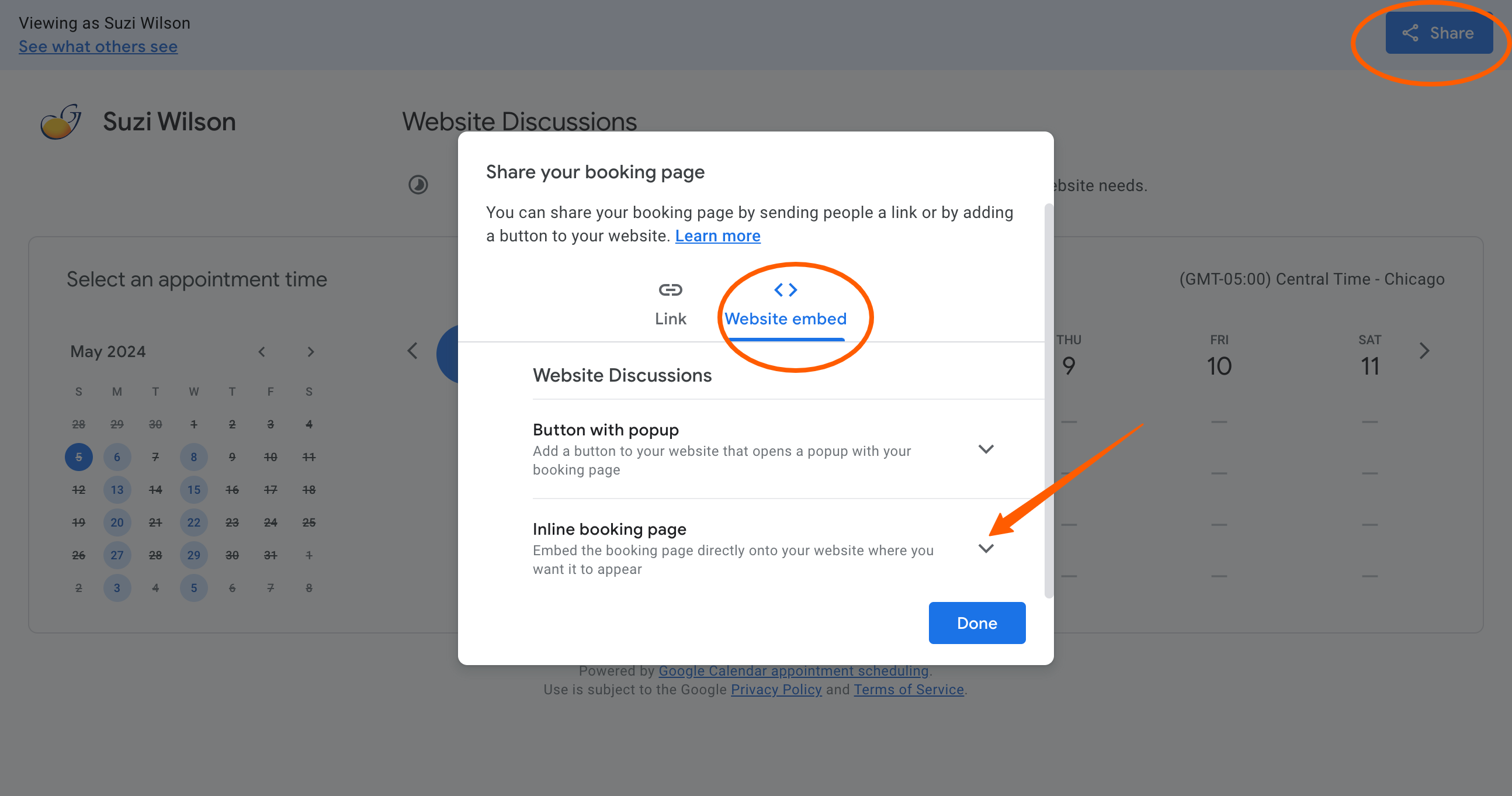 - Choose a primary or secondary calendar where you want to add your appointment schedule.
